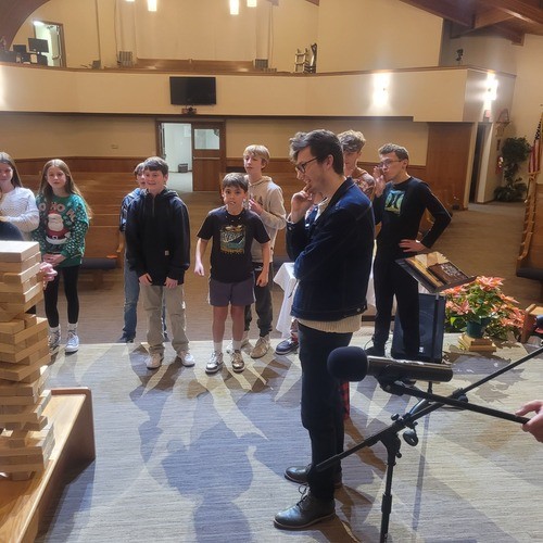 Our larger-scale group meetings occur on Wednesday nights, 6:00-8:00PM. The night begins when doors open at 5:00 and all students (6th-12th grade) are welcome to hang out and play games before service begins. We start @ 6pm with a meal served in the fellowship hall.